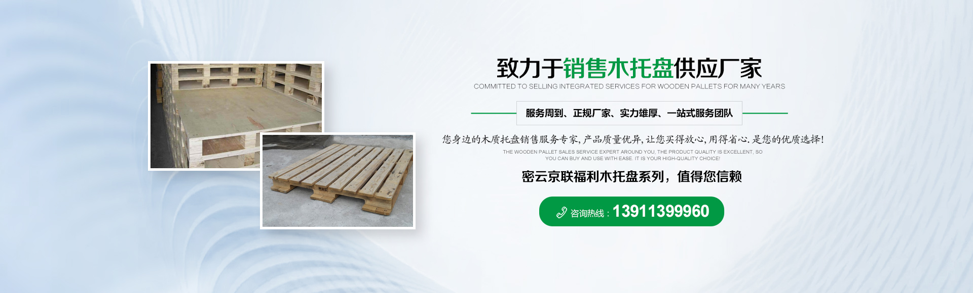 北京京聯(lián)國(guó)順木制品有限公司 (原北京市密云縣京聯(lián)福利木制品廠)成立于1993年,位于北京市密云縣西田各莊鎮(zhèn)蒼頭村,占地約5000平米。我公司工廠是一家大規(guī)模以銷售木托盤為主的生產(chǎn)廠家。本工廠是一家直接采購(gòu)原木,按客戶要求生產(chǎn)規(guī)格尺寸的托盤,我公司工廠位于河北省承德市有著木材加工點(diǎn),可以做到,從山上的木頭下山到客戶手中的托盤都是一手貨,減少了中間商的費(fèi)用,所以我公司售出的產(chǎn)品對(duì)北京這個(gè)龐大的市場(chǎng)來(lái)說(shuō)在同樣的規(guī)格尺寸的托盤來(lái)說(shuō)價(jià)格比較占優(yōu)勢(shì)。